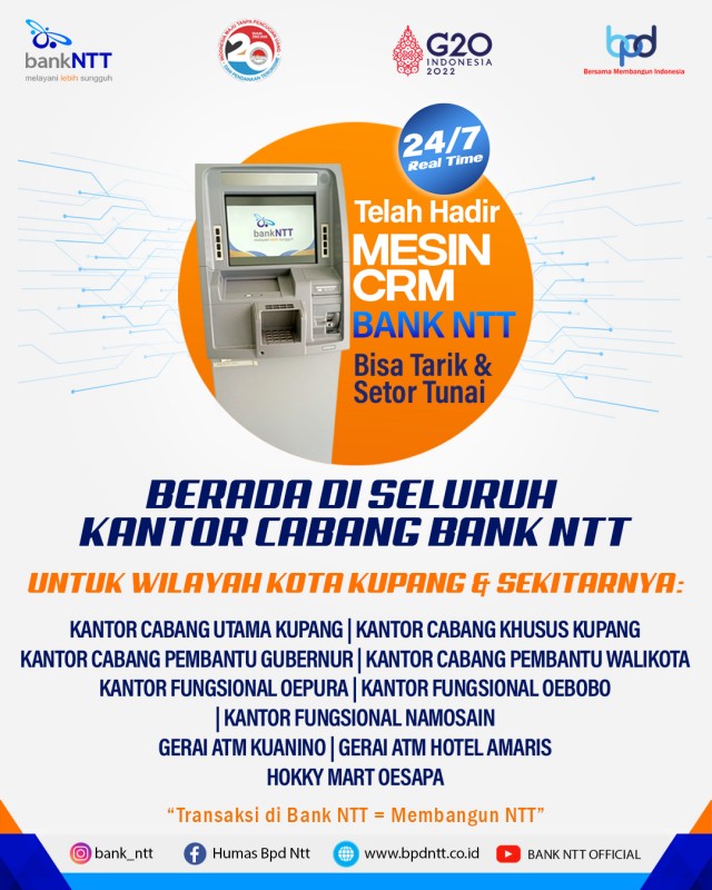Tak ada habisnya berinovasi dalam layanan perbankan. Itulah Bank NTT saat ini. Hari demi hari, BPD yang kian menginspirasi negeri ini mewujudkan visi dan misinya sebagai bank yang sehat, kuat serta terpercaya. Bahkan mereka pun membuktikan ke publik sebagai bank yang seutuhnya menjadi pelopor penggerak ekonomi rakyat yang sukses menggali sumber potensi daerah. Berbagai kegiatan pun dilakukan untuk meningkatkan sumber pendapatan asli daerah (PAD) dan jangan lupa, Bank NTT pun selalu elegan dalam mengoptimalkan fungsi intermediasi.